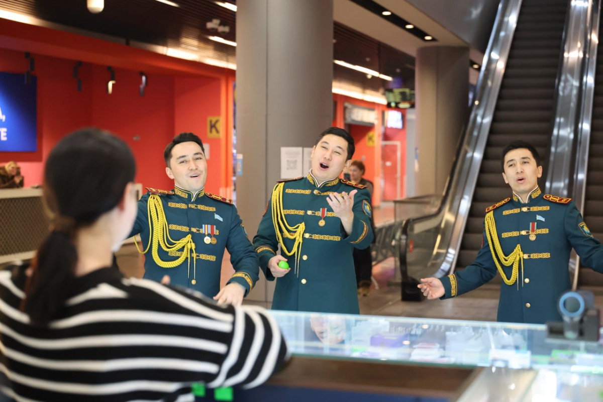 Халықаралық әйелдер күні қарсаңында ІІМ Ұлттық ұланы Ән-би ансамблінің Ерлер хоры елорда аруларына мерекелік көңіл күй сыйлады. Әртістер қоғамдық орындарда танымал әндерді жанды дауыста орындап, нәзік жандыларға гүл шоқтарын тарту етті.