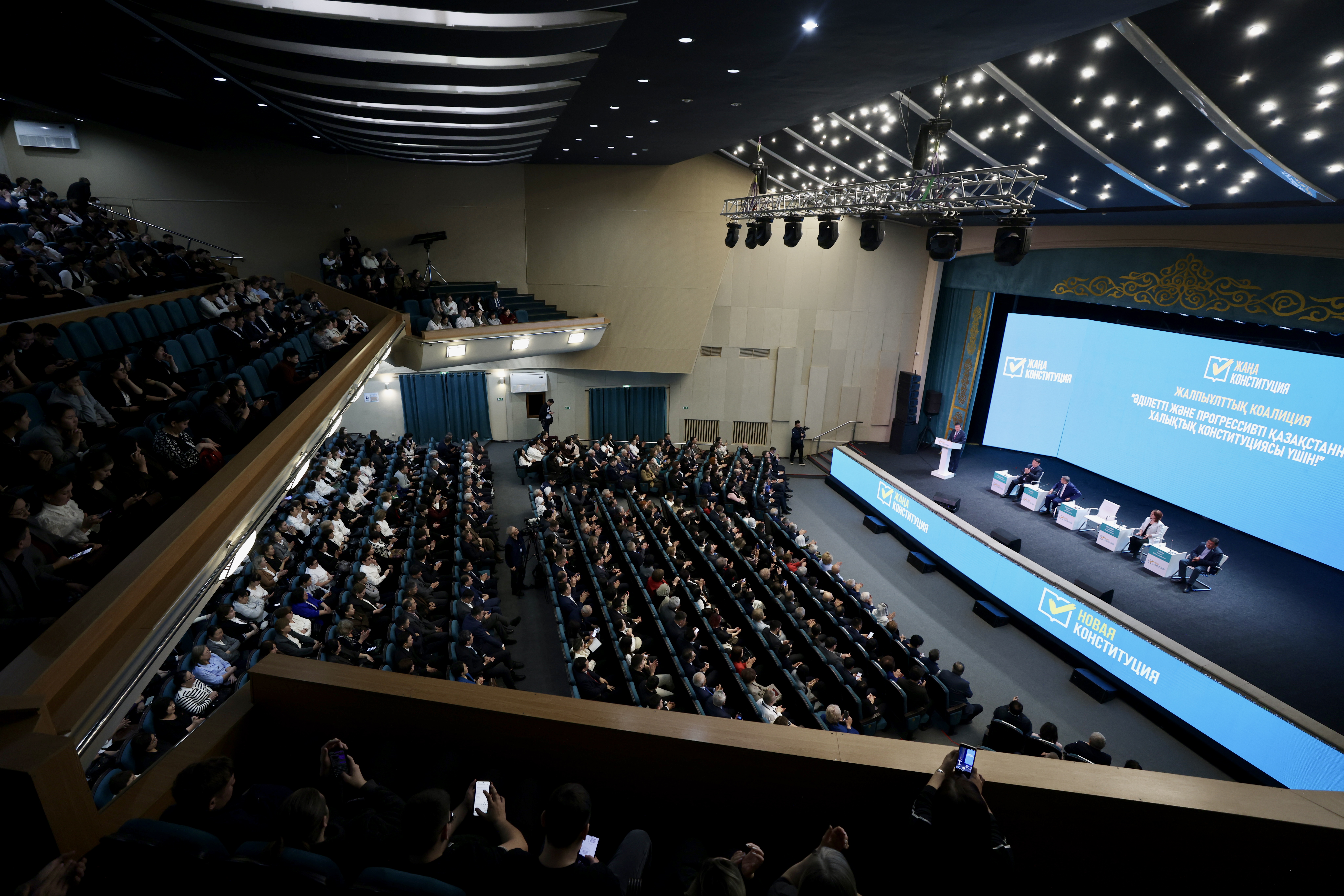 – Қоғамның талабын және заман тынысын терең түсіне отырып, Мемлекет басшысы Ұлттық құрылтайда ұсынылған өзгерістердің ауқымы мен маңыздылығы жаңа Конституция қабылдаумен пара-пар екенін атап өтті. Бұл Конституциялық комиссияның жұмысы барысында нақтыланды. Біз бәріміз Президенттің жобаны әзірлеу процесін өз бақылауында ұстап, комиссия басшыларын және мүшелерін үнемі қабылдап отырғанына куә болдық. Осы кездесулерде Президентіміз жаңа Конституцияның тұжырымдамалық идеяларына, негізгі қағидаттары мен іргелі құндылықтарына қатысты бағыт-бағдарды айқындап, олардың мәні мен мазмұнын белгіледі. Сондықтан Жалпыұлттық коалиция атынан біз Қасым-Жомарт Кемелұлы Тоқаев біздің Әділетті және Прогрессивті Қазақстанның жаңа халықтық Конституциясының бастамашысы әрі архитекторы болды деп нақты айта аламыз, – деді Ерлан Қошанов.