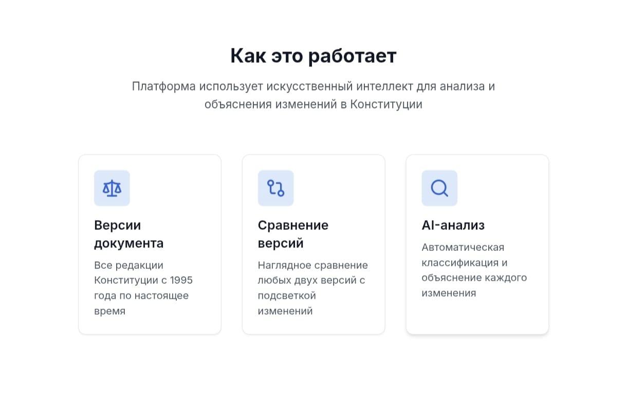 Создатели проекта отмечают, что главная цель платформы — сделать Конституцию более понятной и доступной для граждан. Новый AI-инструмент должен помочь людям лучше ориентироваться в предлагаемых изменениях, обсуждать их и повышать уровень правовой грамотности.