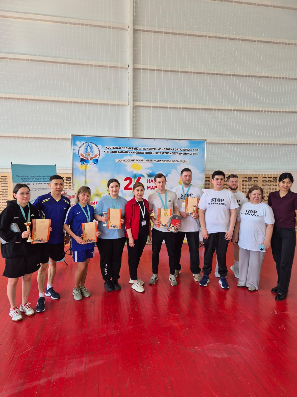 19 марта в рамках Всемирного дня борьбы с туберкулезом ТОО «Костанайская железнодорожная больница»совместно КГП "Костанайский областной центр фтизиопульмонологии", при поддержке Управления здравоохранения акимата Костанайской области провели спартакиаду по настольному теннису среди медицинских работников.